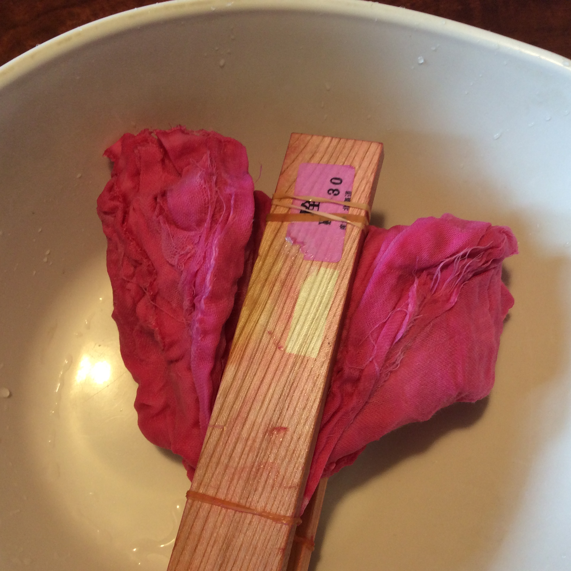 板締めという絞り染めの技法で連続模様を染めます。